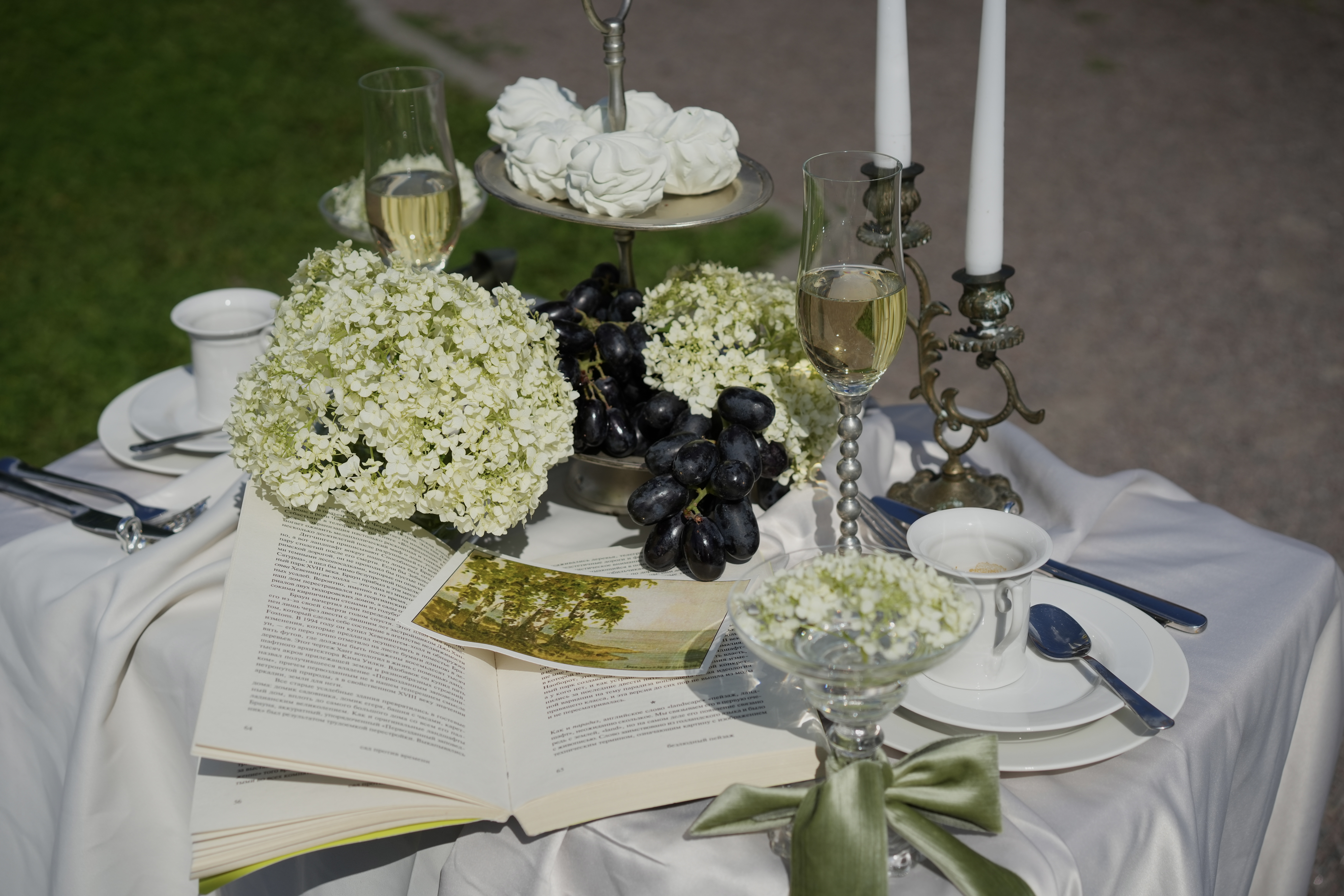 В программе приветственный бокал игристого, экскурсия по открытой только для Вас выставке "Цветы в усадьбе", декор стола в стиле английского чаепития на террасе дворца, где бывали императорские особы и также пили чай с видом на долину.